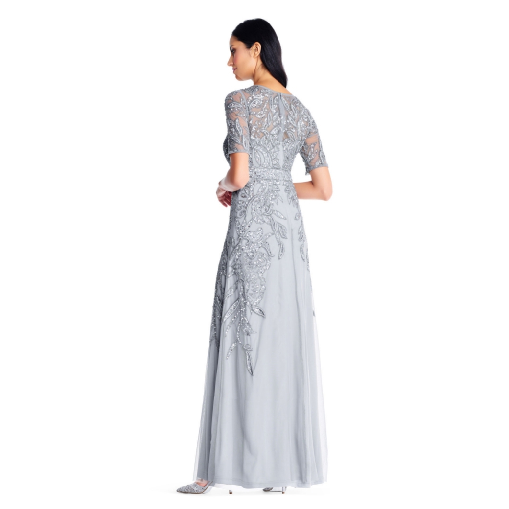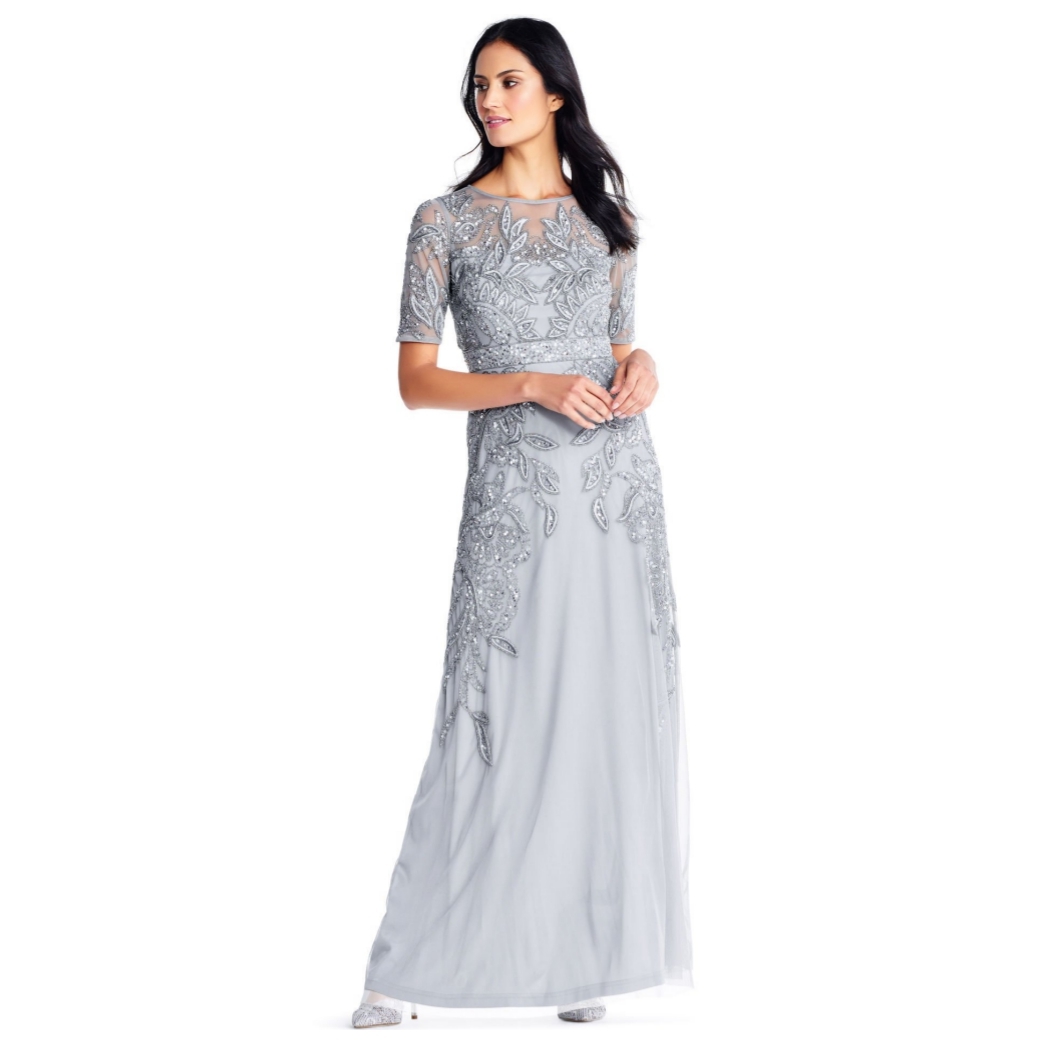 ชุดราตรีสีเทา สายเดี่ยว อก / เอว / สะโพก