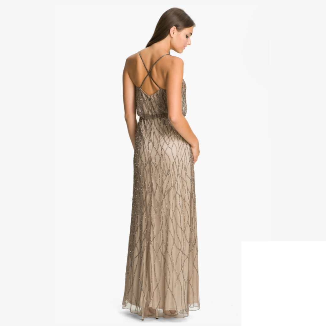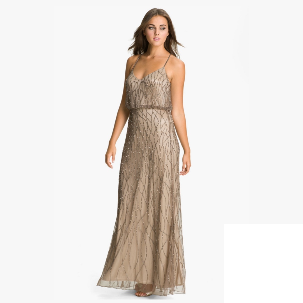 ชุดราตรีสีครีมทอง สายเดี่ยว อก / เอว / สะโพก